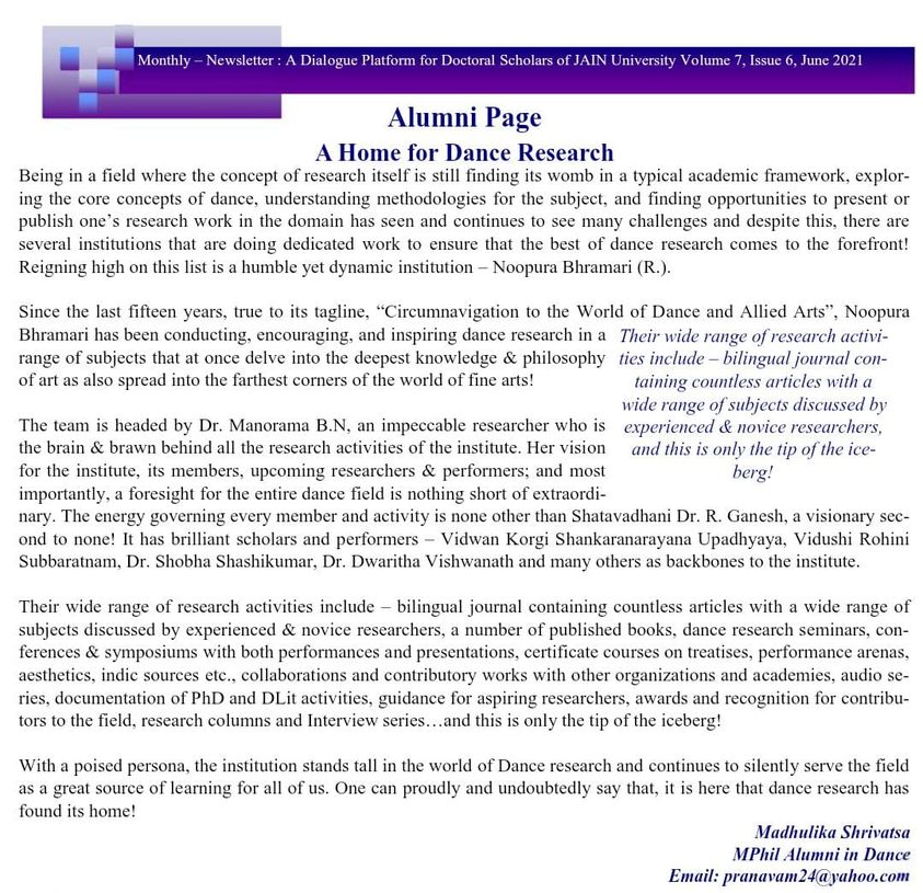 Published in Jain university Doctoral scholars and alumnas monthly newsletter