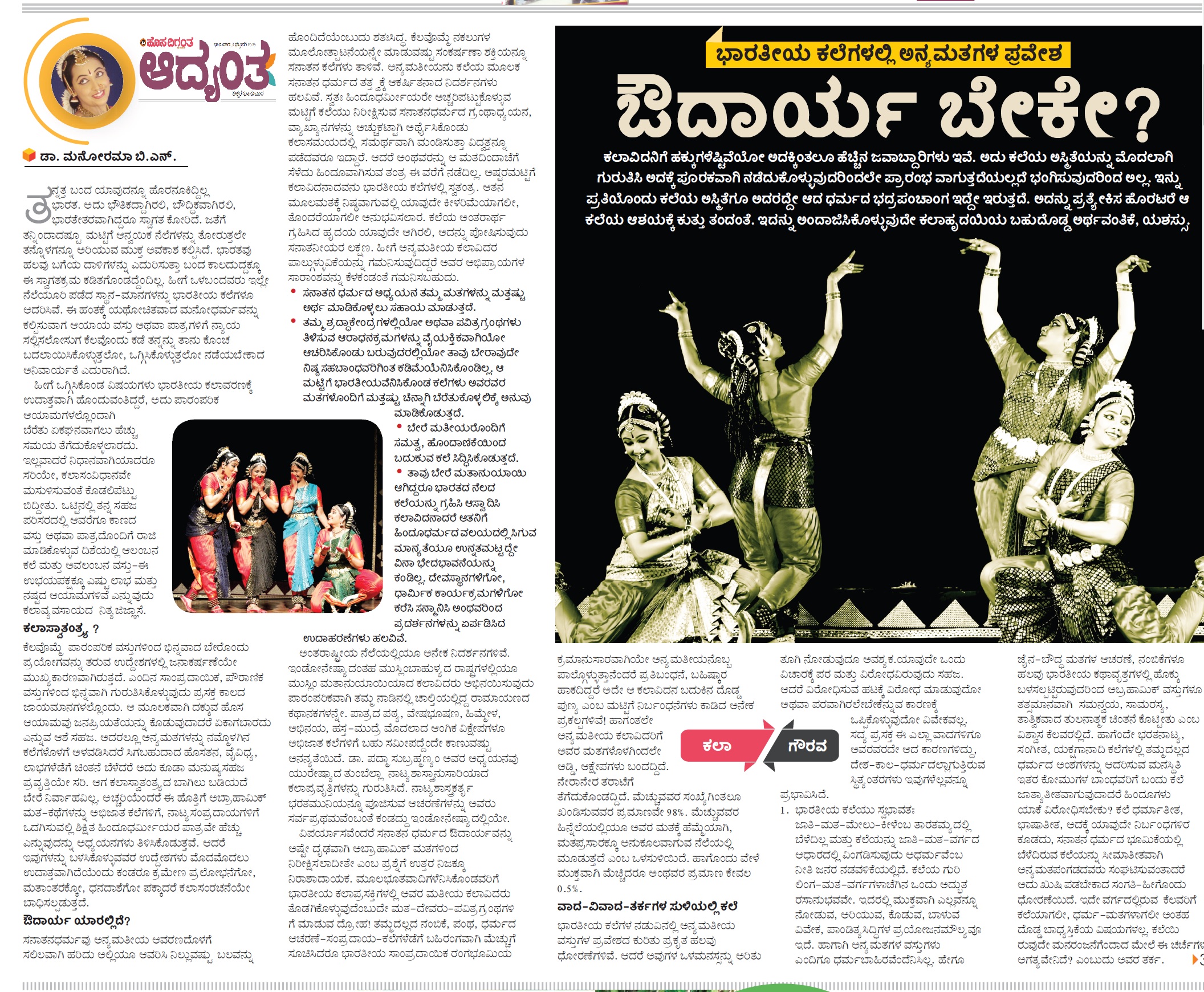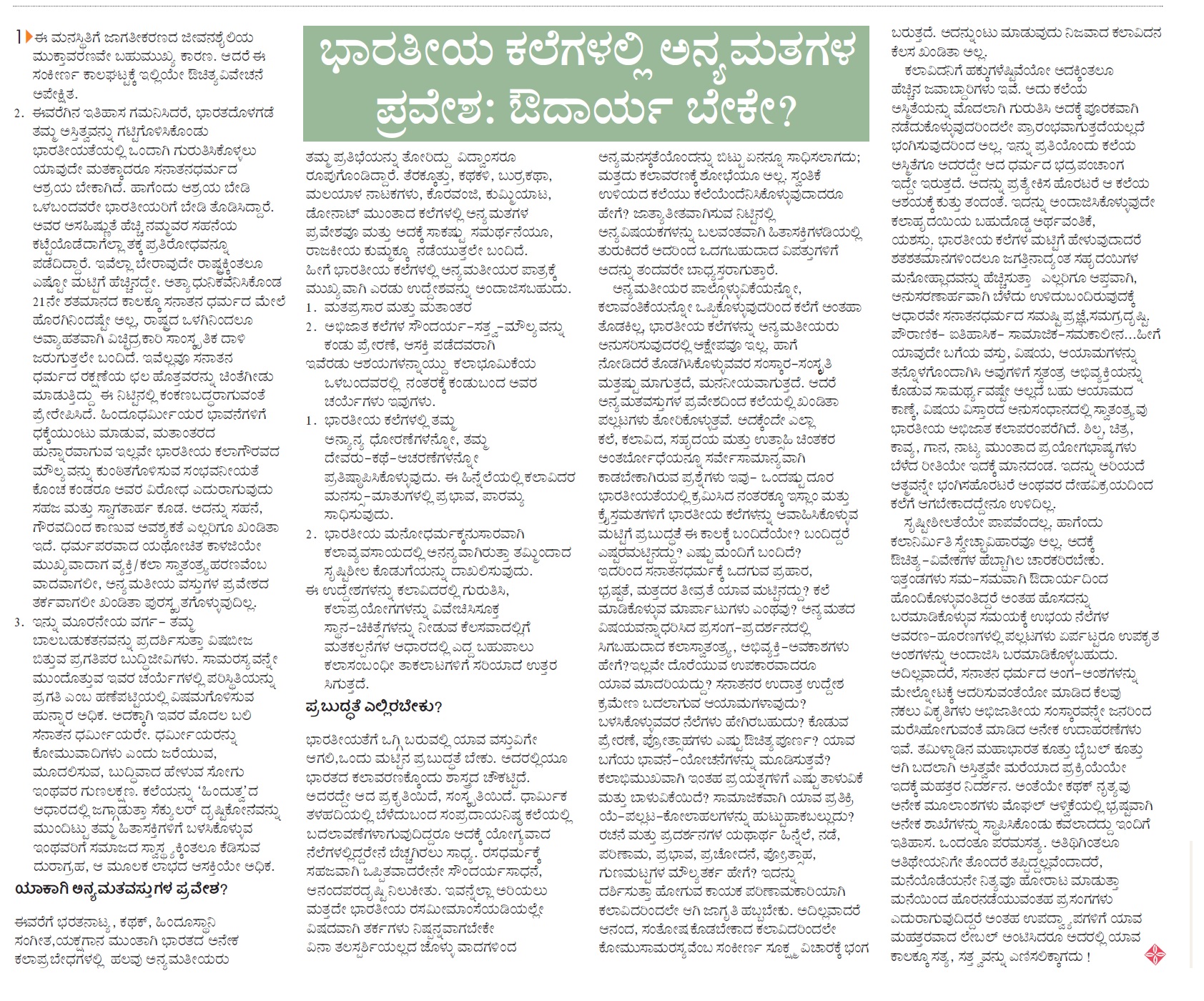 ಭಾರತೀಯ ಕಲೆಗಳಲ್ಲಿ ಅನ್ಯಮತ ಪ್ರವೇಶ- ಔದಾರ್ಯ ಬೇಕೇ? February 3rd 2019. ಇದೇ ಲೇಖನವು ಫೆಬ್ರವರಿ ೨೦೧೯ರ ಅಸೀಮಾ ಮಾಸಪತ್ರಿಕೆಯಲ್ಲಿಯೂ ಪ್ರಕಟವಾಗಿದ್ದು ಮಾರ್ಚ್ ೨೦೧೯ ರ ಸಂಚಿಕೆಗೂ ಮುಂದುವರೆದಿದೆ.