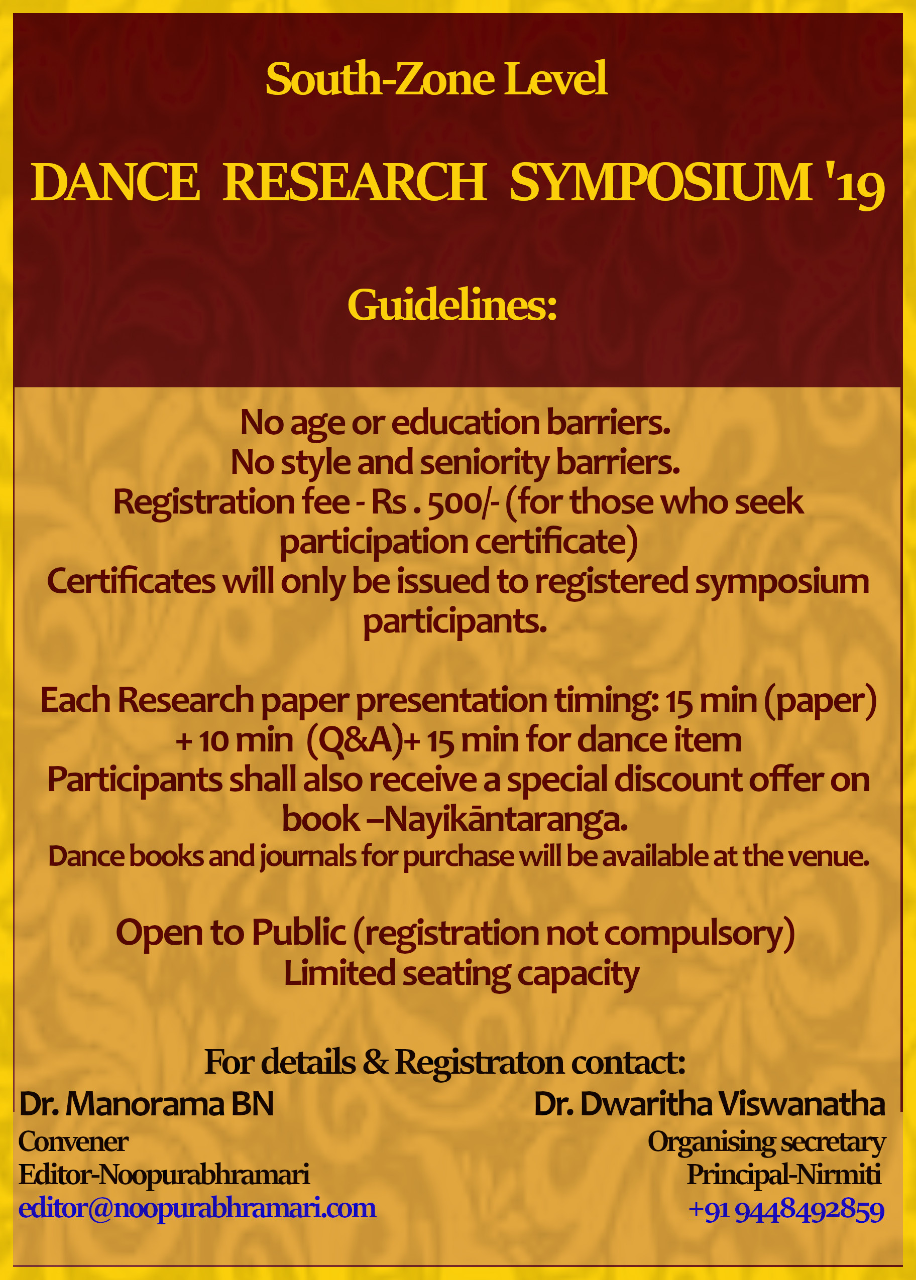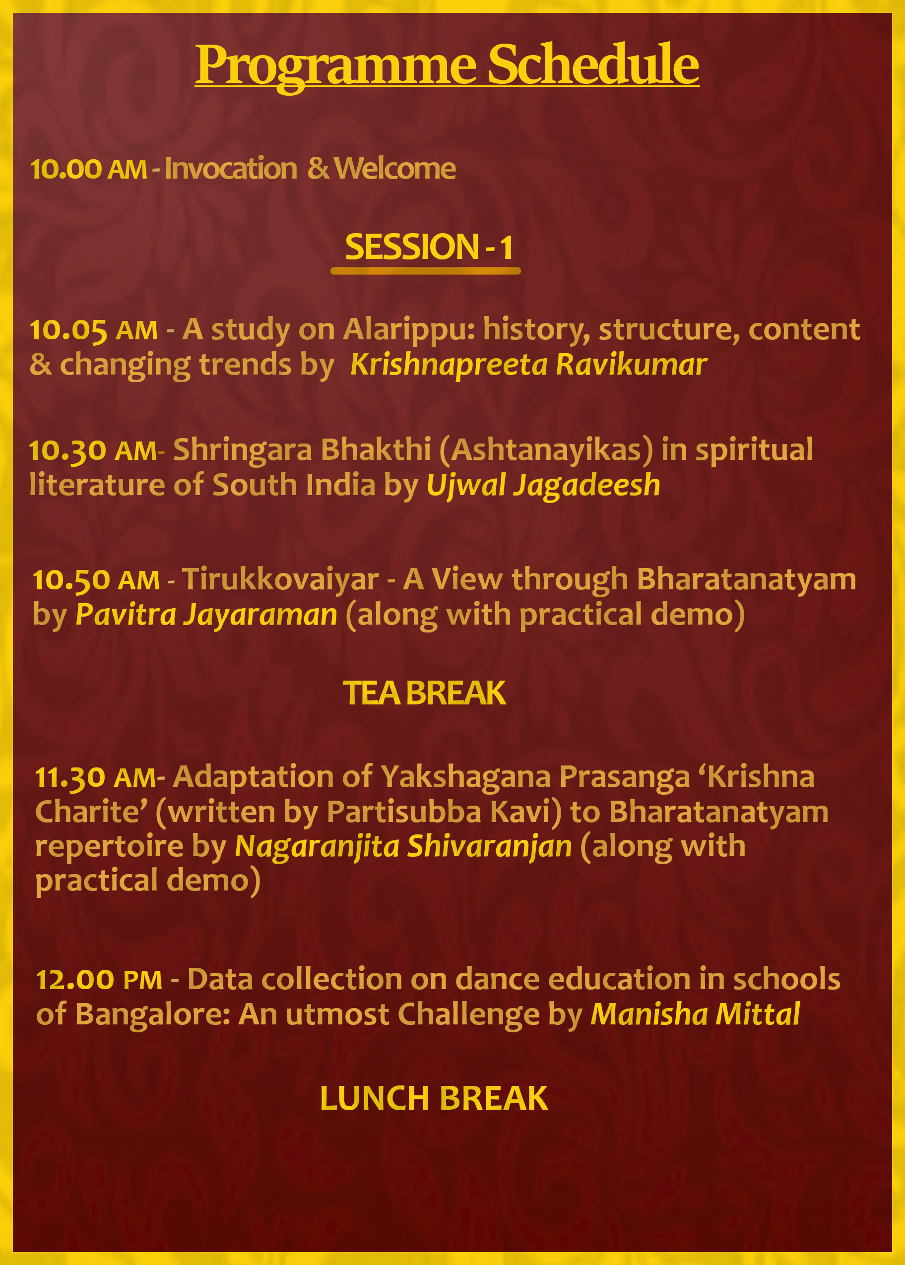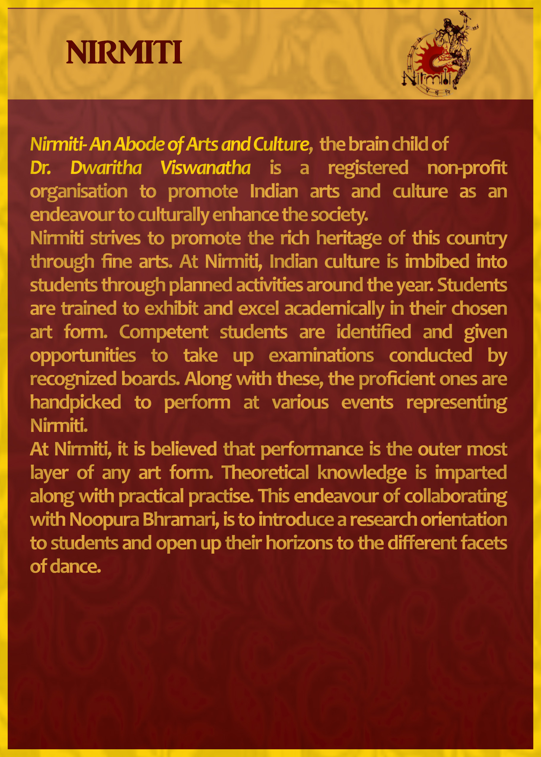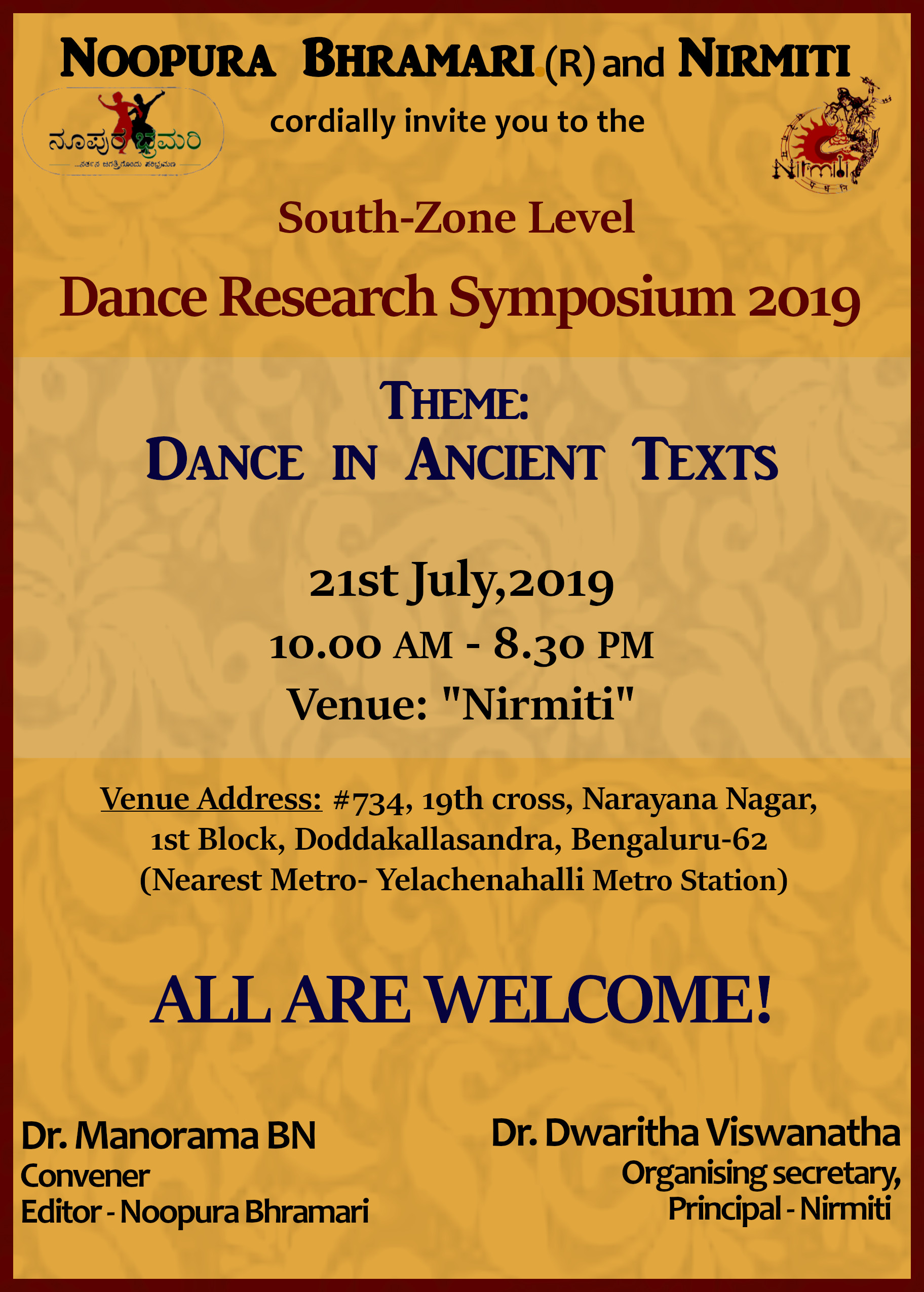 Venue : Nirmiti, #734, 19th Cross, Narayana Nagar, 1st block, Doddakallasandra, (Near Yalachenahalli Metro Station) Bengaluru, 62