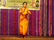 ವಿದ್ಯಾ ಶಿಮ್ಲಡ್ಕ ಬಳಗ `ಭರತನಾಟ್ಯ’ವನ್ನು ಮುಖ್ಯವಾಗಿರಿಸಿಕೊಂಡು ಪ್ರಬಂಧಮಂಡನೆ ಮತ್ತು ಪ್ರಾತ್ಯಕ್ಷಿಕೆಯನ್ನು ಕೊಡಲು ಸಜ್ಜಾಗಿದ್ದರು. ಸಮಯದ ಮಿತಿ ನೋಡಿಕೊಂಡು ವಿಷಯದ ಪರಿಮಿತಿ ನಿರ್ಧರಿಸಬೇಕಾದವರು ಯಾರು ಎಂಬ ಗೊಂದಲ ಪ್ರದರ್ಶನದ ಕೊನೆಯಲ್ಲಿ ವಿದ್ಯಾ ಅವರ ಮಾತಿನಲ್ಲೇ ಸ್ಪಷ್ಟವಾಯ್ತು. ಭರತ, ನಂದಿಕೇಶ್ವರ, ಪದ್ಮಾಸುಬ್ರಹ್ಮಣ್ಯಂ, ಸುಂದರಿ ಸಂತಾನಂ ಮುಂತಾದವರ ವಾದ- ಪ್ರತಿವಾದಗಳ ಸಂತೆಯಲ್ಲಿ ದಾರಿ ಬಿಡಿಸಿಕೊಳ್ಳುತ್ತಿದ್ದ ವಿದ್ಯಾರನ್ನು ನಿರ್ವಹಣೆಯ ಹೊಣೆ ಹೊತ್ತ ಎಂ.ಎಲ್ ಸಾಮಗರು ಹೇಗೋ ಪ್ರಾತ್ಯಕ್ಷಿಕೆಯ ವೇದಿಕೆಗೆ `ಹಾರಿಸಿ’ ತಂದರು.