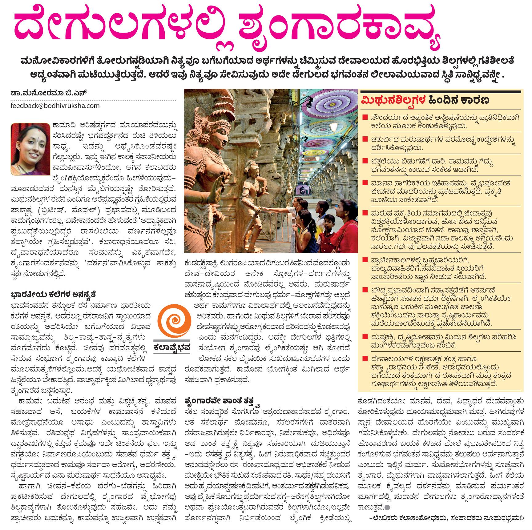 ದೇಗುಲಗಳಲ್ಲಿ ಶೃಂಗಾರ ಕಾವ್ಯವಿಜಯವಾಣಿ ಬೋಧಿವೃಕ್ಷ#ಮಿಥುನಶಿಲ್ಪಗಳ ಕುರಿತ ಲೇಖನ- *#ದೇಗುಲಗಳಲ್ಲಿ ಶೃಂಗಾರಕಾವ್ಯ* -ಮೇ 19-25, 2018#ರತಿಶಿಲ್ಪ#ಶೃಂಗಾರರಸ#ಕಾಮಶಿಲ್ಪ#Eroticsculptures