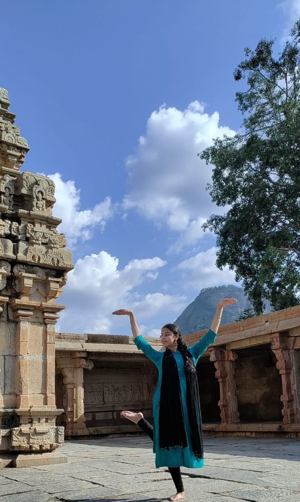 (Author : Shravya K, a young artist from NIRMITI – an Abode of Arts and Culture. She is currently studying in II PU in Jyothi PU College and has been learning Kalakshetra bani of Bharatanatyam since the age of eight from Dr. Dwaritha Viswanatha. She has also been learning Carnatic Classical music, under Mrs. Nagarathna Bhat. She has completed her Bharatanatyam Junior and Senior exams, Music Junior exam, conducted by KSEEB. She is also Intern in Nrityashilpa Yatra- a Temple study programme conducted by Noopurabhramari.)