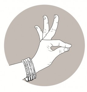 ನಿತ್ಯಜೀವನದಲ್ಲಿ ಬರೆಯುವುದು ಎಂದು ಸೂಚಿಸಲು, ಹಣೆಗೆ ಬೊಟ್ಟಿಡಲು, ಕಿವಿಯ ಆಭರಣ ಹಾಕಿಕೊಳ್ಳುವಾಗ, ಚಿವುಟಲು, ಕೀಳಲು ಮುಂತಾದವುಗಳ ಸಂವಹನಕ್ಕೆ ಬಳಸುತ್ತಾರೆ.