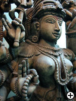 ಯಕ್ಷಗಾನದಲ್ಲಿ ವಿವಾಹ, ಮಾಲೆ, ಮನ್ಮಥ, ಸೌಂದರ್ಯ, ಮುತ್ತು, ಸತಿ, ಮಾತನಾಡುವುದು ಎಂಬ ಅರ್ಥಗಳಿಗಾಗಿ ಬಳಸುತ್ತಾರೆ.