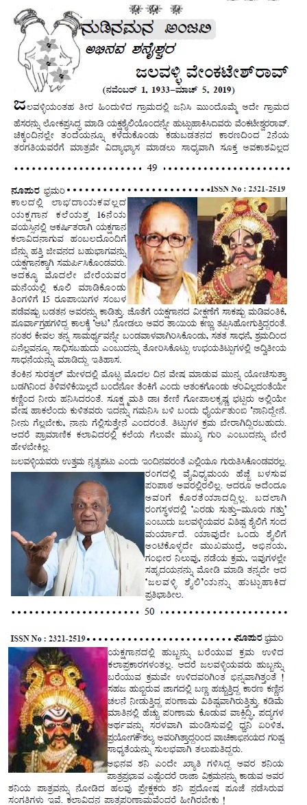 ಜಲವಳ್ಳಿಯಂತಹ ತೀರ ಹಿಂದುಳಿದ ಗ್ರಾಮದಲ್ಲಿ ಜನಿಸಿ ವುಂದೊಮ್ಮೆ ಅದೇ ಗ್ರಾಮದ ಹೆಸರನ್ನು ಲೋಕಪ್ರಸಿದ್ಧ ಮಾಡಿ ಯಕ್ಷಶೈಲಿಯೊಂದನ್ನೇ ಹುಟ್ಟುಹಾಕಿಸಿzವರು ವೆಂಕಟೇಶ್ವರರಾವ್. ಚಿಕ್ಕಂದಿನಲ್ಲೇ ತಂದೆಯನ್ನೂ ಕಳೆದುಕೊಂಡು ಕಡುಬಡತನದ ಕಾರಣದಿಂದ ೨ನೆಯ ತರಗತಿಯವರೆಗೆ ಮಾತ್ರವೇ ವಿದ್ಯಾಭ್ಯಾಸ ಮಾಡಲು ಸಾಧ್ಯವಾಗಿ ಸೂಕ್ತ ಅವಕಾಶವಿಲ್ಲದ ಕಾಲದಲ್ಲಿ ಲಾಭದಾಯಕವಲ್ಲದ ಯಕ್ಷಗಾನ ಕಲೆಯತ್ತ ೧೬ನೆಯ ವಯಸ್ಸಿನಲ್ಲಿ ಆಕರ್ಷಿತರಾಗಿ ಯಕ್ಷಗಾನ ಕಲಾವಿದನಾಗುವ ಹಂಬಲದೊಂದಿಗೆ ಬೆನ್ನು ಹತ್ತಿ ಜೀವನದ ಬಹುಭಾಗವನ್ನು ಯಕ್ಷಗಾನಕ್ಕಾಗಿ ಸಮರ್ಪಿಸಿಕೊಂಡವರು. ಅದಕ್ಕೂ ಮೊದಲೇ ಬೇರೆಯವರ ಮನೆಯಲ್ಲಿ ಕೂಲಿ ಮಾಡಿಕೊಂಡು ತಿಂಗಳಿಗೆ ೧೫ ರೂಪಾಯಿಗಳ ಸಂಬಳ ಪಡೆವಷ್ಟು ಬಡತನ ಅವರನ್ನು ಕಾಡಿತ್ತು. ಜೊತೆಗೆ ಯಕ್ಷಗಾನದ ವೀಕ್ಷಣೆಗೆ ಸಾಕಷ್ಟು ಮಡಿವಂತಿಕೆ, ಪೂರ್ವಾಗ್ರಹಗಳಿದ್ದ ಕಾಲಕ್ಕೆ ‘ಆಟ’ ನೋಡಲು ಅವರ ತಾಯಿಯ ಕಣ್ಣು ತಪ್ಪಿಸಿಹೋಗುತ್ತಿದ್ದರಂತೆ. ನಂತರ ಕೇವಲ ತನ್ನ ಸಾಮರ್ಥ್ಯವನ್ನೇ ಬಂಡವಾಳವಾಗಿರಿಸಿಕೊಂಡು, ಸತತ ಸಾಧನೆ, ಶ್ರಮದಿಂದ ಏನೆಲ್ಲವನ್ನೂ ಸಾಧಿಸಬಹುದು ಎಂಬುದನ್ನು ತೋರಿಸಿಕೊಟ್ಟು ಉಭಯತಿಟ್ಟುಗಳಲ್ಲಿ ಅದ್ವಿತೀಯ ಸಾಧನೆಯನ್ನು ಮಾಡಿದ್ದು ಇತಿಹಾಸ.