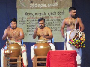 ಕೂಡಿಯಾಟ್ಟಂನ ಹಿಮ್ಮೇಳದಲ್ಲಿ ಶ್ರುತಿವಾದ್ಯವಿಲ್ಲ, ಸನ್ನಿವೇಶಕ್ಕೆ ಪೂರಕವಾದ ಮಾಧುರ್ಯ ಗುಂಜಿಸುವ ಧ್ವನಿಗಳೇ ಇಲ್ಲ. ಇದರ ಗಾಯನ ಹಾಗೂ ಮಾತಿಲ್ಲದ ಕಲಾಪ ನನ್ನ ಯಕ್ಷ-ಪ್ರೇಕ್ಷಣೆಯ ಸಂಸ್ಕಾರಕ್ಕೆ ಕೂಡಿಯಾಟ್ಟಂನ ಬಹಳ ದೊಡ್ಡ ಕೊರತೆಯಾಗಿಯೇ ತೋರಿತು. ಇವರ ಮುಖ್ಯ ತಾಳವಾದ್ಯ – ಮಿಝವು, ಪುಟ್ಟ ಕಡಾಯಕ್ಕೆ ಮುಚ್ಚಿಗೆ ಹಾಕಿದಂತಿರುವ ವಾದ್ಯ. ಪ್ರದರ್ಶನದ ಬಹುಭಾಗದಲ್ಲಿ ಜೋಡಿ ಮಿಝವುಗಳ ಸದ್ದು, ನಾದರಹಿತ ಚಂಡೆಯಂತೆ ಅಥವಾ ಭರತನಾಟ್ಯ ಶಿಕ್ಷಣದಲ್ಲಿ ಗುರುಗಳು ಕುಟ್ಟುವ ಕೊರಡಿನಂತೆಯೇ ಕರ್ಣ ಕಠೋರವಾಗಿತ್ತು. ನಮ್ಮ ಚಂಡೆಯ ಜತೆಗಿನ ಮದ್ದಳೆಯಂತೆ, ಇಲ್ಲೊಂದು ಪುಟ್ಟ ಡೋಲು ಇದೆ. ಕೋಲಿನಲ್ಲಿ ನುಡಿಸುವ ಅದು ಪರಿಣಾಮದಲ್ಲಿ ಮದ್ದಳೆಯ ಸುಖದ ಹತ್ತಿರವೂ ಸುಳಿಯುವುದಿಲ್ಲ. ಮಿಝವನ್ನು ಪೂರ್ಣಹಸ್ತದಲ್ಲಿ ಅಕ್ಷರಶಃ ಬಡಿಯುತ್ತಾರೆ. ಚಂಡೆ, ಮದ್ದಳೆ, ಮೃದಂಗಾದಿ ವಾದ್ಯಗಳಂತೆ ಬಿಡಿನುಡಿತಗಳ ಅಥವಾ ಬೆರಳುಗಳ ಚಮತ್ಕಾರ ಇದರ ವಾದನದಲ್ಲಿಲ್ಲ. ಕೇವಲ ಲಯವಿನ್ಯಾಸ ಹಾಗೂ ಧ್ವನಿಯ ಏರಿಳಿತದಲ್ಲಷ್ಟೇ ನಡೆಯುವ ಭಾವಪೋಷಣೆ ನನಗಂತೂ ರಸವೈವಿಧ್ಯಕ್ಕೆ ಕುತ್ತಾಗಿಯೇ ಕಾಣಿಸಿತು.