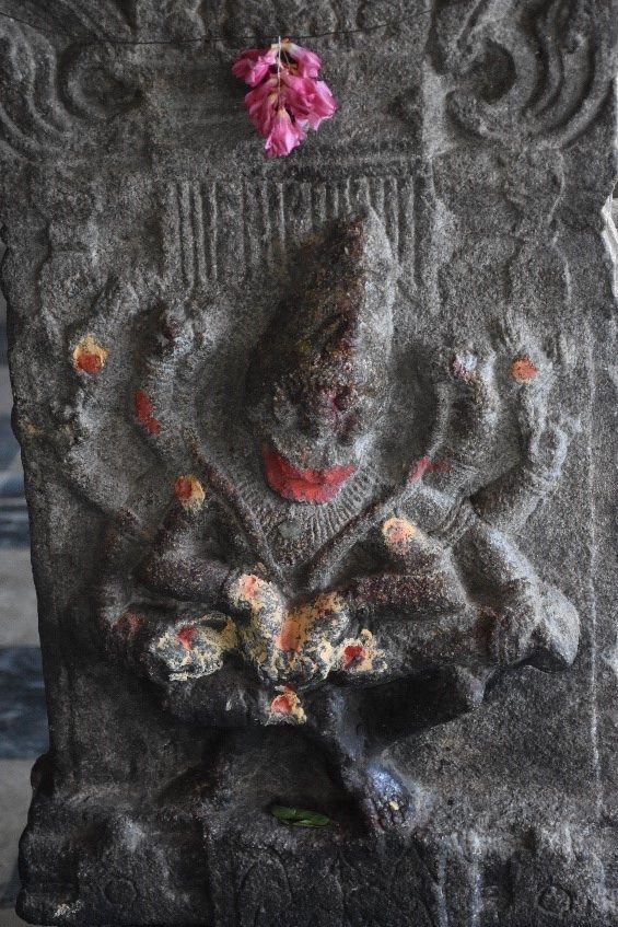 Figure 9 ‘s Ugra Narasimha is found in the Gōpura of Bhoganandīśvara Temple. It consists the same features as above mentioned but simplified into four hands.