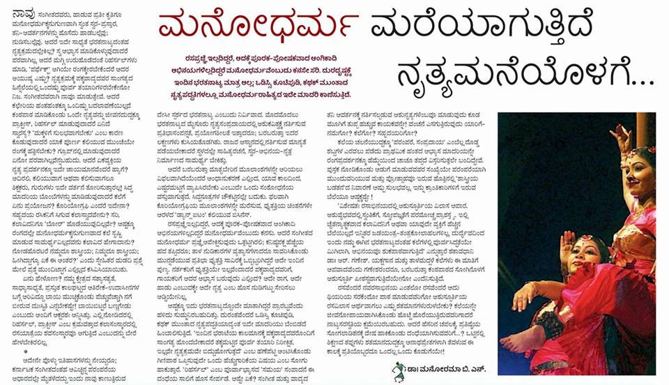 ಮನೋಧರ್ಮ ಮರೆಯಾಗುತಿದೆ ನೃತ್ಯಮನೆಯೊಳಗೆಉದಯವಾಣಿ ಲಲಿತರಂಗJuly 7th 2017