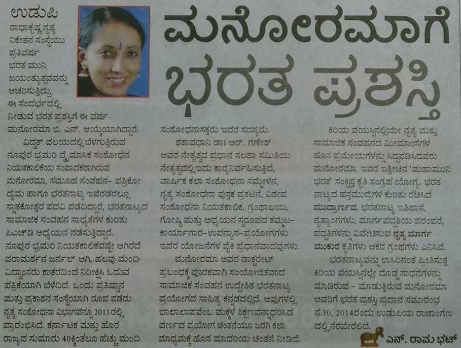 ಮನೋರಮಾಗೆ ಭರತ ಪ್ರಶಸ್ತಿ