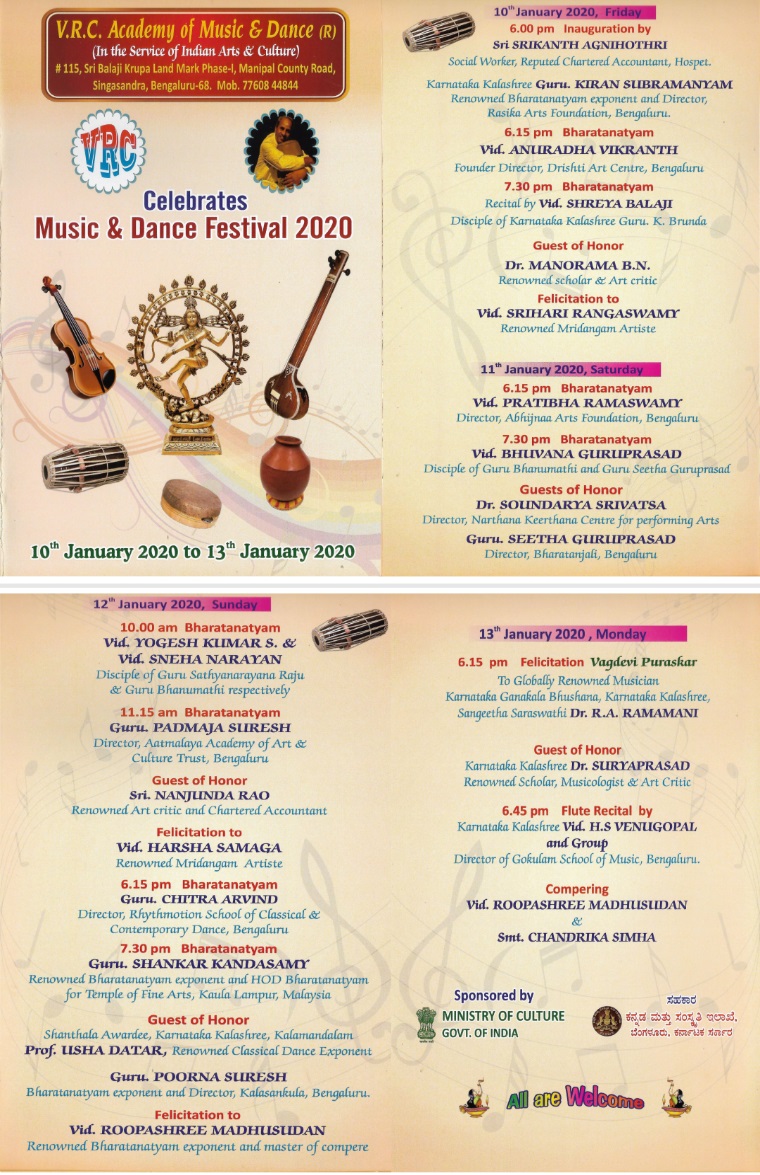 ಮಹಾರಾಜಪುರಂ ಸಂತಾನಂ, ಬಾಂಬೆ ಸಹೋದರಿಯರು, ವಾಣಿ ಗಣಪತಿ, ಶ್ರೀಧರ್, ಪದ್ಮಿನಿ ರಾಮಚಂದ್ರನ್, ಪ್ರತಿಭಾ ಪ್ರಹ್ಲಾದ್, ಶಂಕರ್ ಕಂದಸ್ವಾಮಿ ಮೊದಲಾದ ಸಂಗೀತ- ನೃತ್ಯದ ಖ್ಯಾತನಾಮರಿಗಷ್ಟೇ ಅಲ್ಲದೆ ಅಲ್ಲದೆ ಎಳೆಯರಿಗೂ ನುಡಿಗಾರಿಕೆಯನ್ನು ತೋರಿದ ’ಕಲಾಯೋಗಿ’ ವಸಂತಪುರಂ ರಾಮಮೂರ್ತಿ ಚಂದ್ರಶೇಖರ್. ಹಾಗೆಂದರೆ ಬಹುಜನರಿಗೆ ತಿಳಿಯದೇನೋ. ಕಾರಣ, ಎಲ್ಲರ ಬಾಯಲ್ಲಿ ಅವರು ಮೆಚ್ಚಿನ ವಿ.ಆರ್.ಸಿ ! ೧೯೯೨ರಿಂದ ಮೊದಲ್ಗೊಂಡು ಸುಮಾರು ೨೫ ಕ್ಕೂ ವರ್ಷಕ್ಕೂ ಮಿಕ್ಕಿದ ಅನವರತ ಕಲಾ ಕಾಯಕ ಅವರದ್ದು. ಎ. ರಾಜಾಚಾರ್ ಮತ್ತು ಎ.ರಾಜಗೋಪಾಲನ್ ಅವರ ಬಳಿ ಪ್ರಾಥಮಿಕ ಅಭ್ಯಾಸ ಪಡೆದು ಟಿ.ಎಸ್.ಮಣಿ ಅವರಲ್ಲಿ ಮೃದಂಗದ ಉನ್ನತ ಶಿಕ್ಷಣ ಪಡೆದಿದ್ದರು.