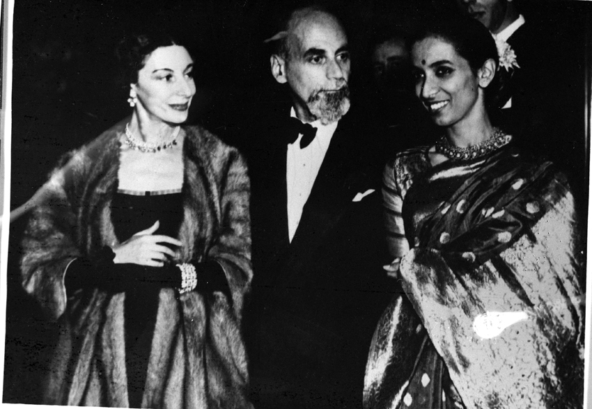 Photograph taken at the supper party held by the Indian High Commissioner at India House, on November 1,1951, in honour of Mrinalini Sarabhai during her season at the Cambridge Theatre in London. Mrinalini Sarabhai (right) is seen in the picture with Arnold Harkell, a celebrated critic and authority on ballet and Mme. Alicia Markova at the supper party.