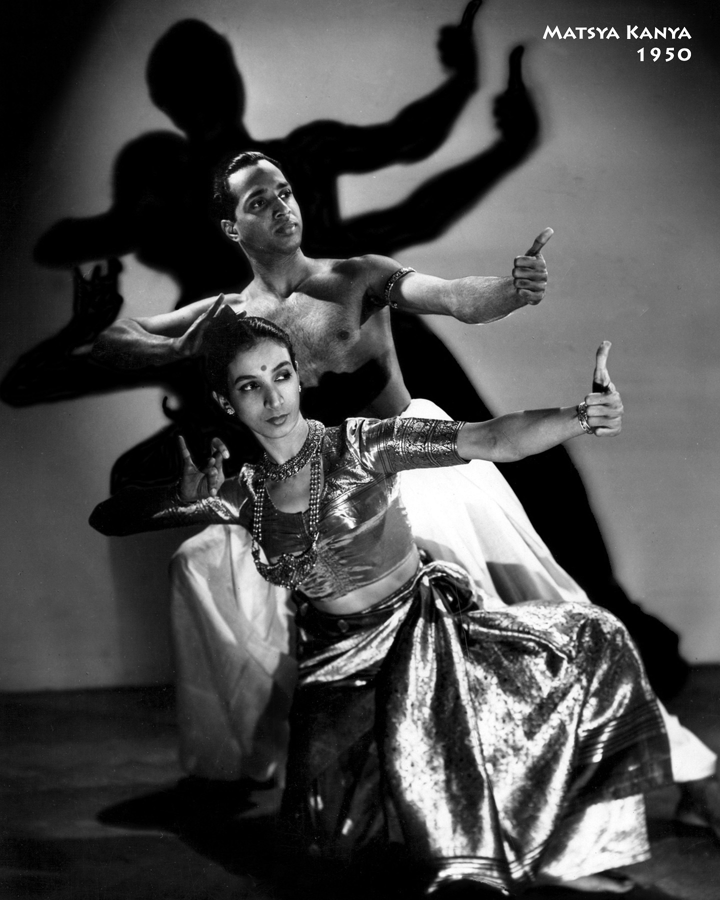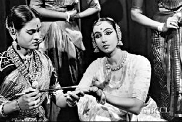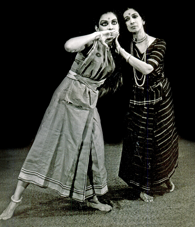 Mallika Sarabhai (left) with Mrinalini Sarabhai (right) performing in Chandalika.