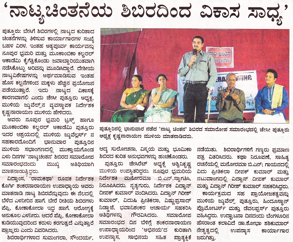 ‘ನಾಟ್ಯಚಿಂತನೆಯ ಶಿಬಿರದಿಂದ ವಿಕಾಸ ಸಾದ್ಯ’