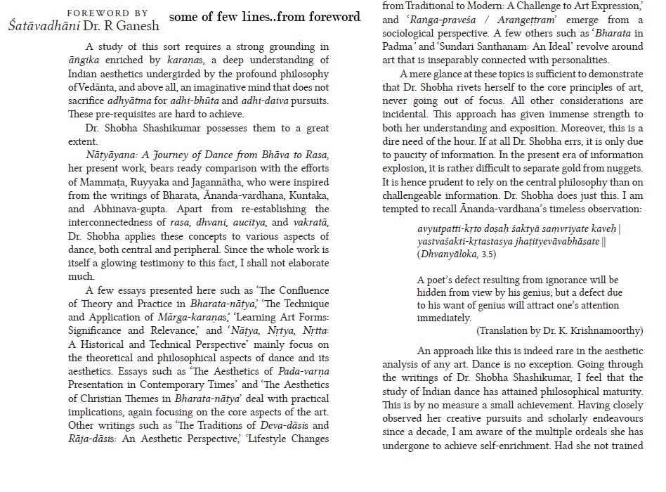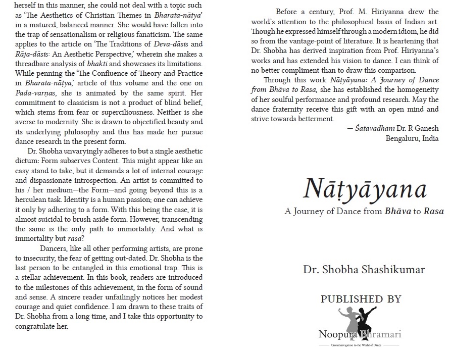 Going through the writings of Dr. Shobha Shashikumar, I feel that the study of Indian dance has attained philosophical maturity.