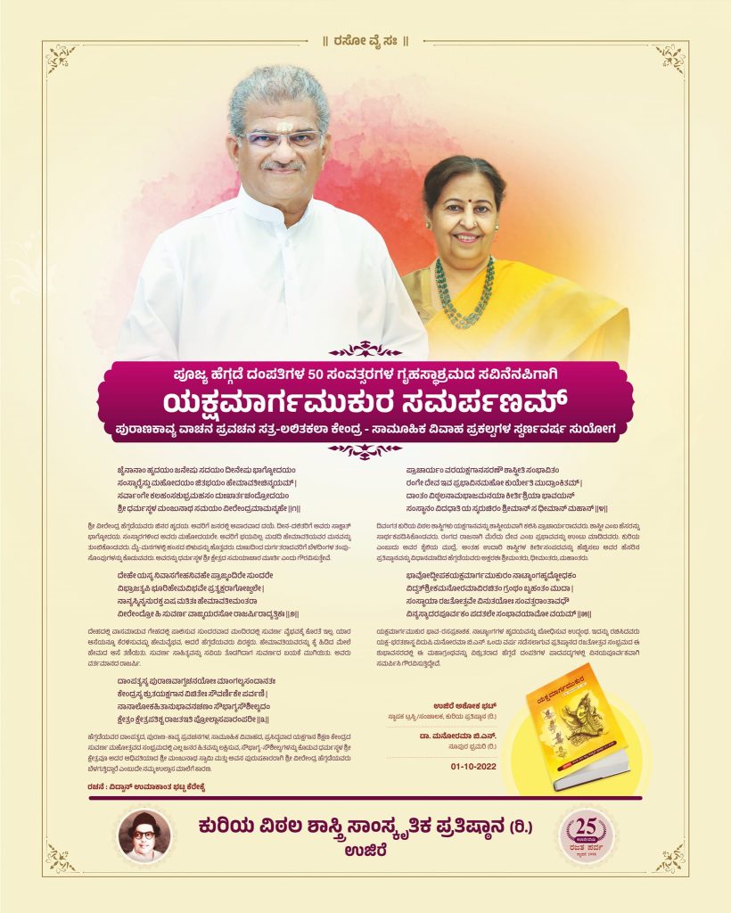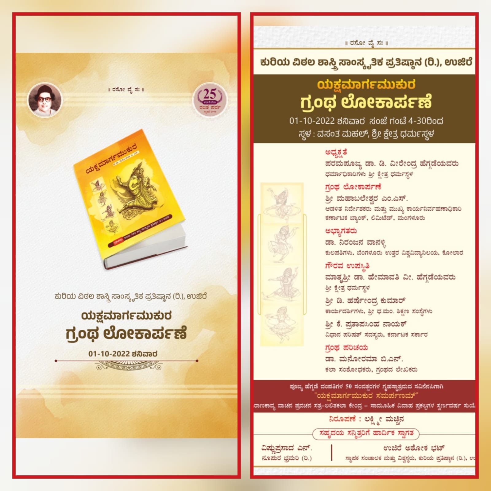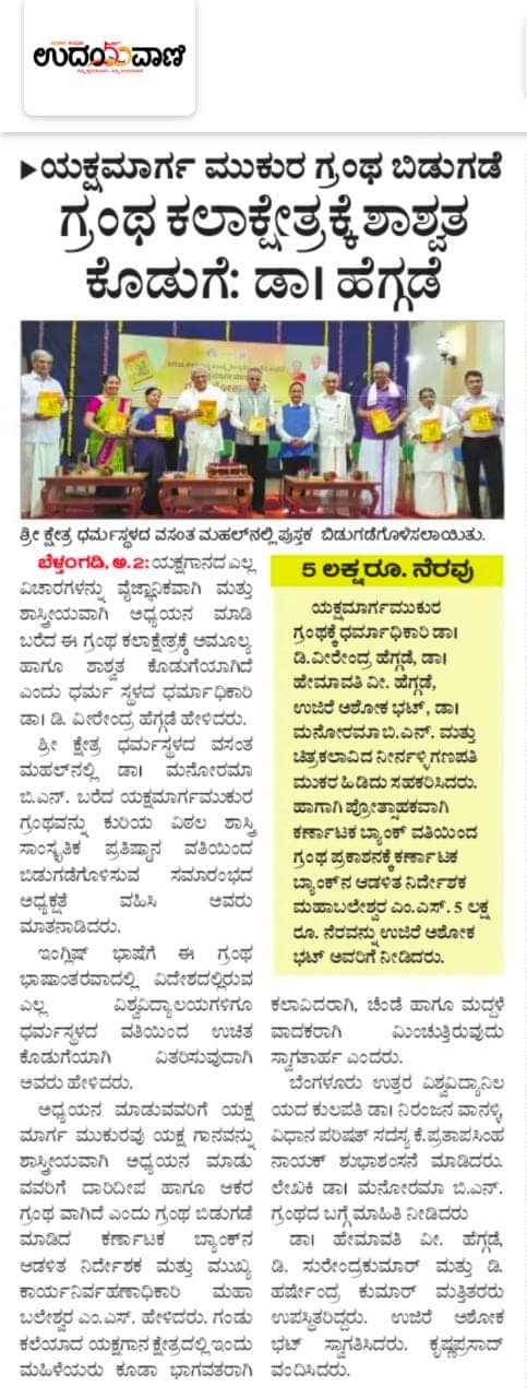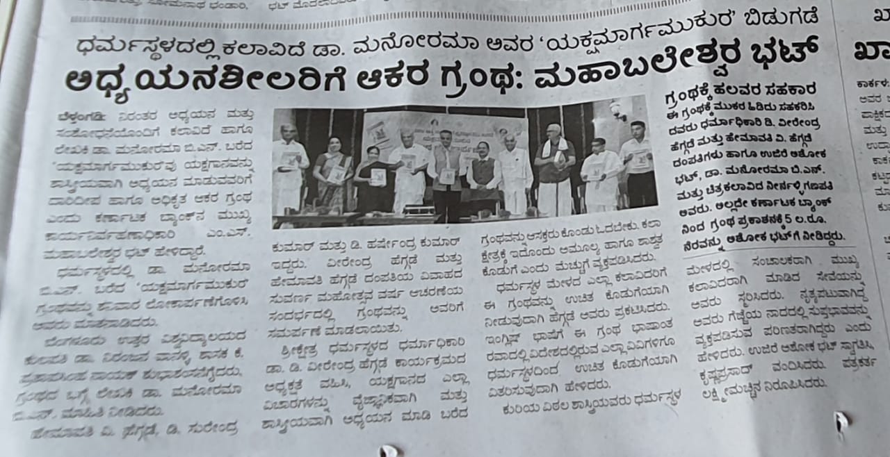 Shri Kshetra Dharmasthala has purchased and delivered this book all the universities and Artistes of Dharmasthala Yakshagana mela freely, to promote the studies and art research.