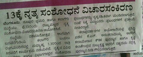 ನೃತ್ಯಸಂಶೋಧನ ವಿಚಾರಸಂಕಿರಣ ಫೆಬ್ರವರಿ 13 2018ವಿವಿಧ ಪತ್ರಿಕೆಗಳಲ್ಲಿ ವರದಿ (ಪ್ರಜಾವಾಣಿ, ವಿಜಯವಾಣಿ, ಹೊಸದಿಗಂತ, ವಿಜಯಕರ್ನಾಟಕ)