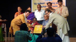 In his presidential speech, Dr. R. Shesha Shastry, congratulated the association for its way of working, appreciated the effort of the association in identifying able critics and honouring them. This gesture is rare to find in the field of art. He added that, this effort would only enhance the responsibilities of the critics thus making them more aware of the facts of the field. Certificates were distributed to dancers, research enthusiasts participated in the workshop by Dr. Shesha Sastry and Sri Sridhar. While Smt Manorama presented her pre award welcome address and thanked supporters, Smt Padmini compeered.