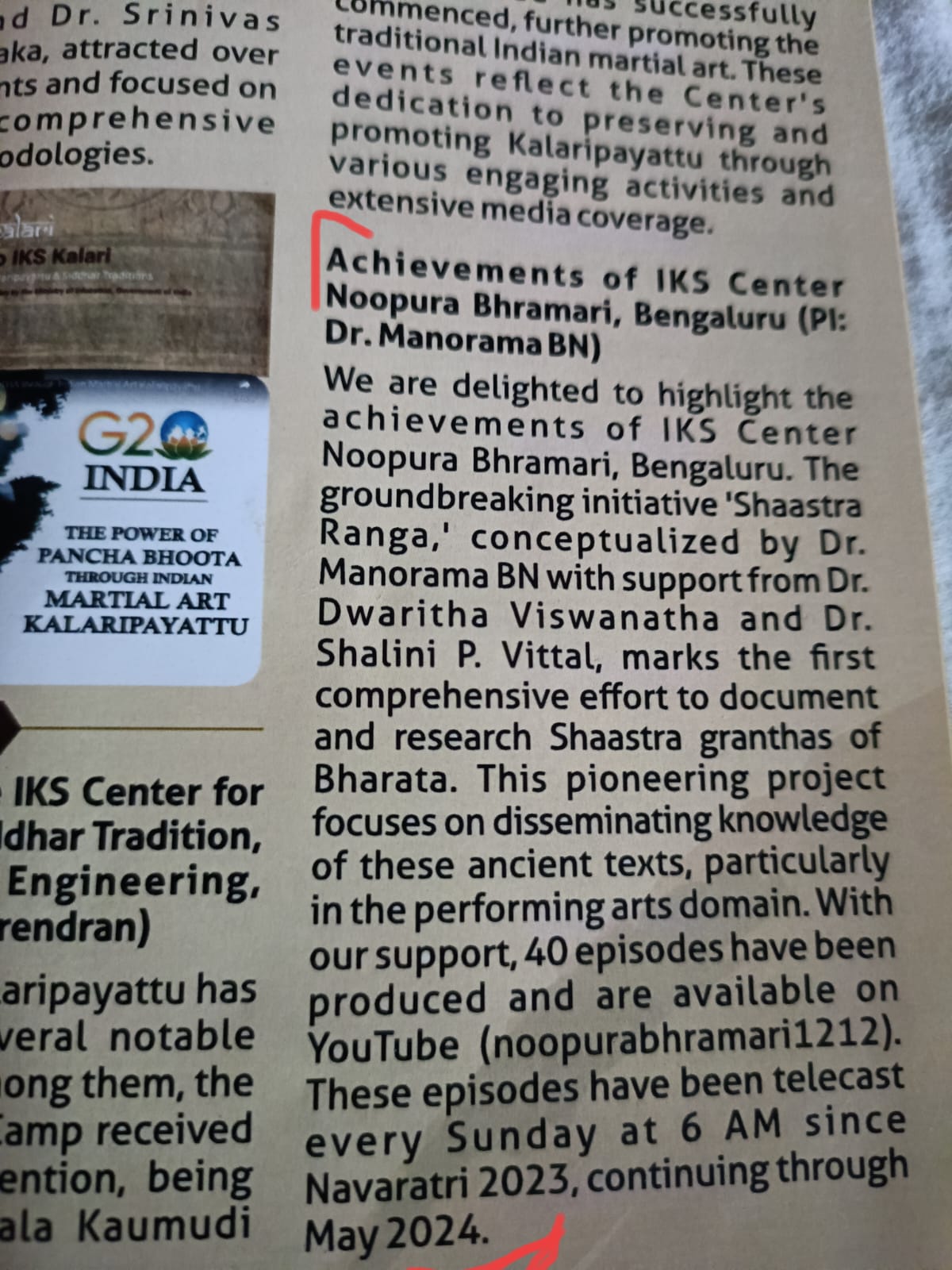 Glad that #ShaastraRanga weekly programme is the #NoopuraBhramari’s most remarkable achievement as reported in #IKS Newsletter.