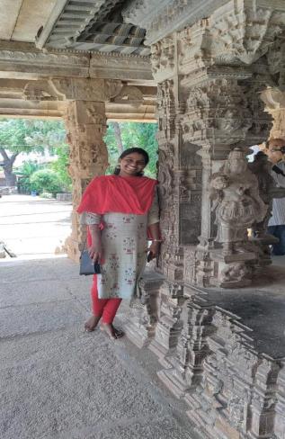 Kum. Vaishali.A.V, is learning Kalakshetra Style of Bharatanatyam under Dr. Dwaritha Viswanatha since 2010 at Nirmiti. She has completed her Junior and Senior exams conducted by KSEEB , Visharad Prathama conducted by Akhila Bharatiya Gandarva Mahavidyalaya Mandal , and also completed her Bachelor in Fine Arts in Bharatanatyam from Tamil University , consistently securing first class and distinction. She has performed individually and in group in many places as a part of Nirmiti. She is currently studying final year MA in economics under Maharani Cluster University. Along with performance she is teaching dance to younger batches of Nirmiti and also for other students from various countries , thus making herself perfect in all the aspects by making use of every opportunity given to her . She is also an Intern in Nrityashilpa Yatra – A temple study programme conducted by Noopurabhramari .