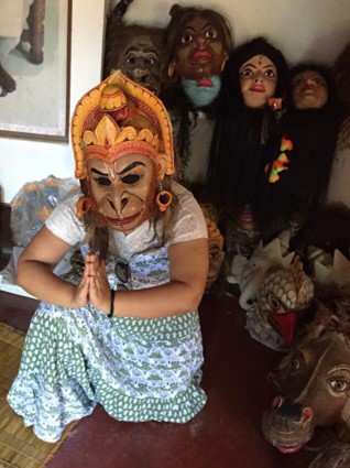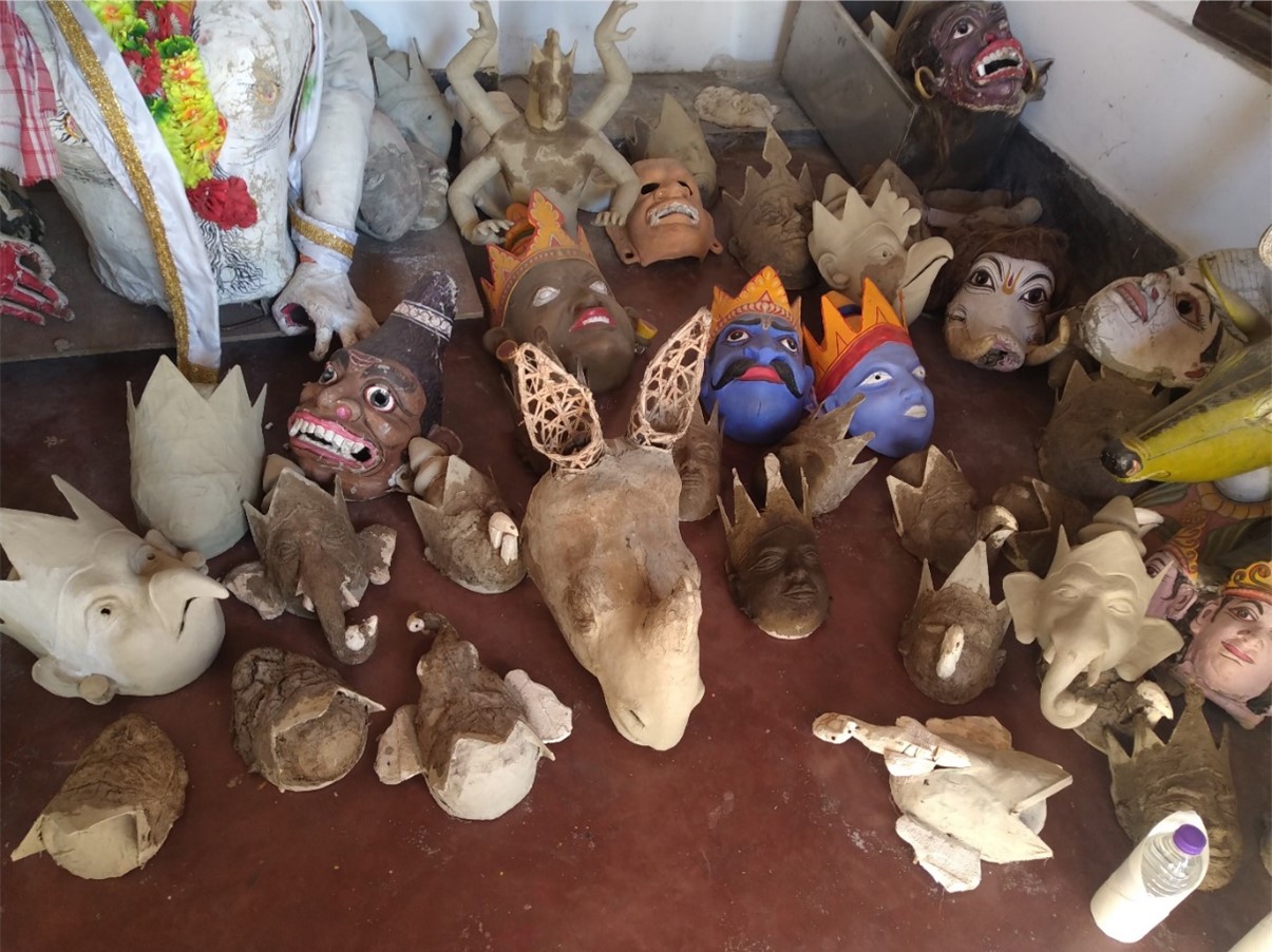 In the author’s visit to the mask making Sattra in Majuli – Assam, she was fortunate to have met Sri Hem Chandra Goswami[18] and his younger brother. She learnt that the masks developed off-late have movable jaws to facilitate better breathing and dialogue delivery of the actors.